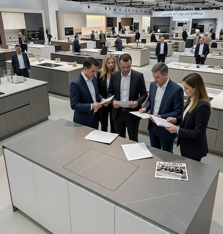 Al eliminar la presencia de la grifería convencional, iCLOM reestructura el espacio visual aportando integración total entre salón y cocina en estancias continuas: una transición invisible donde el espacio fluye continuo, sin interrupciones ni concesiones estéticas. Personalizable en todas sus versiones al emplazar el mismo material de la encimera en el panel posterior.